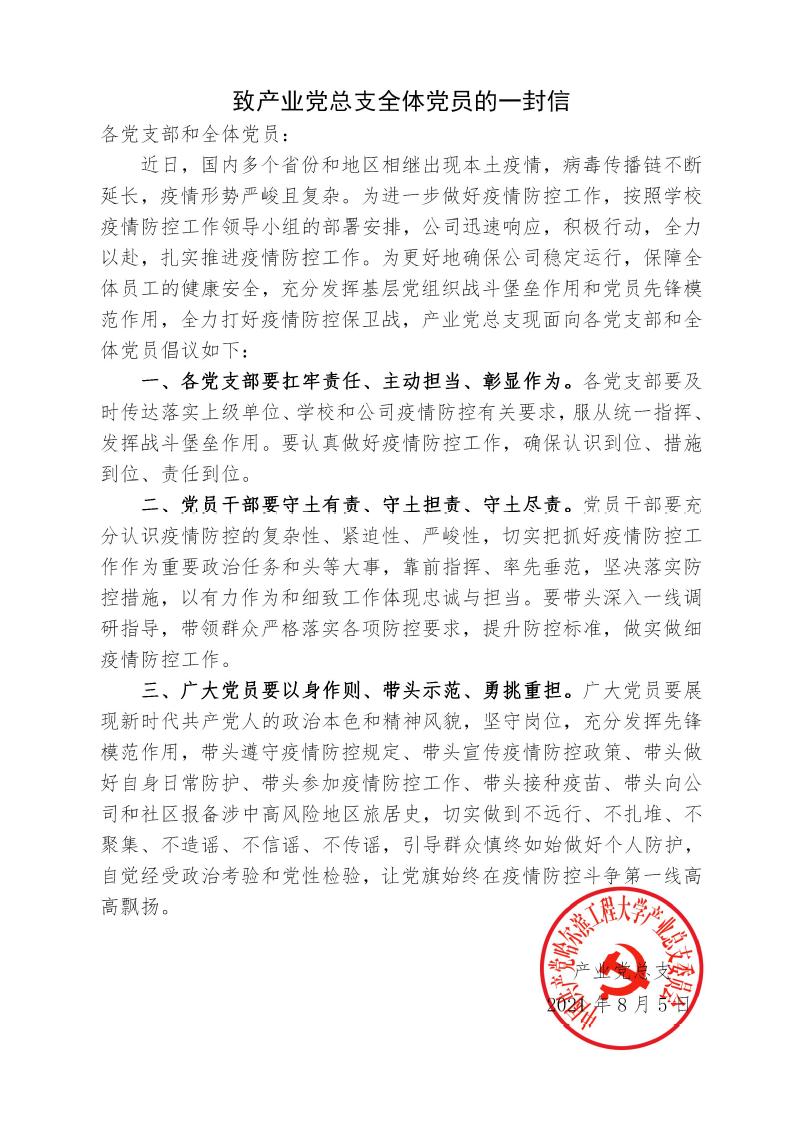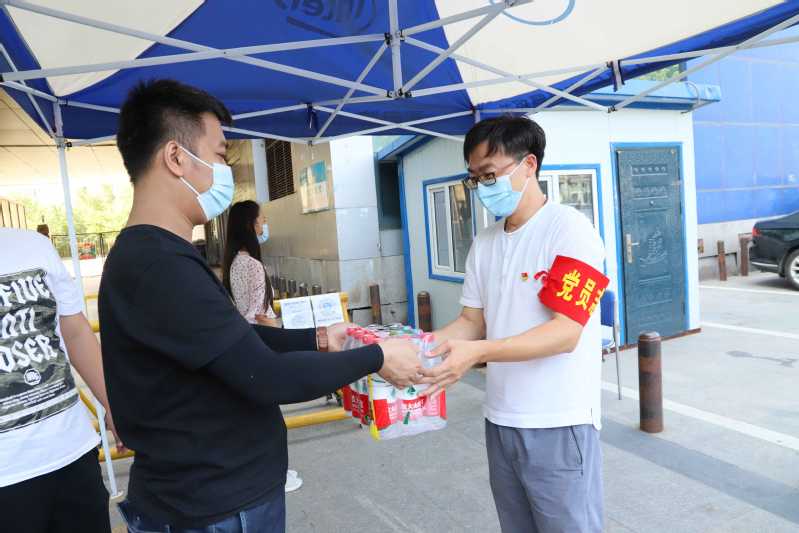 产业党总支第一时间支向各党支部和全体员工发出“倡仪书”,全体党员带动群众主动放弃休息时间,自觉加入疫情防控工作中。测温、验码、发放物资,每一名党员干部都用实际行动诠释着共产党员的初心和使命,凝聚起打赢疫情防控阻击战的强大合力,让党旗再次在战“疫”一线高高飘扬。
